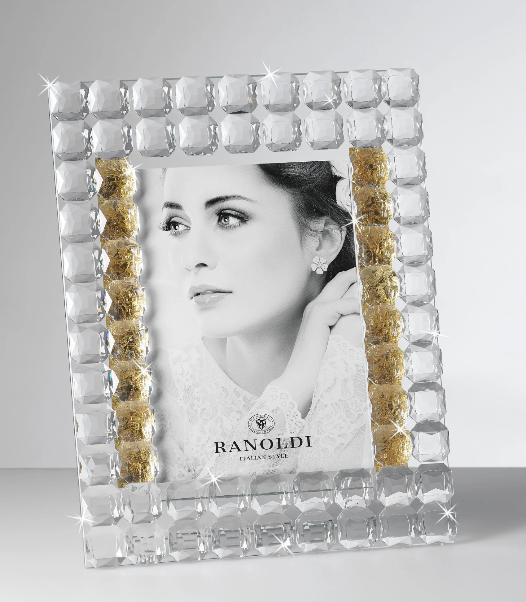 PORTAFOTO IN CRISTALLO CON INSERTI IN ORO cm.13X18 - RANOLDI