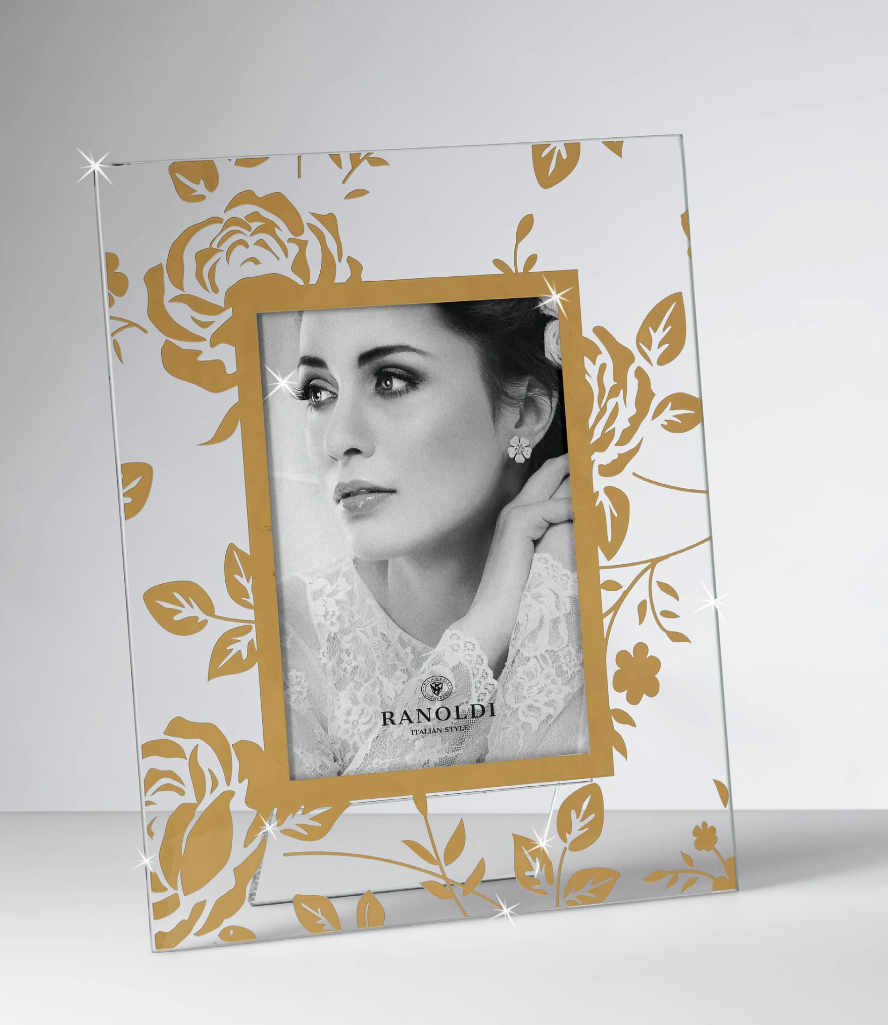PORTAFOTO IN CRISTALLO SERIGRAFIA FIORI ORO cm.13X18 - RANOLDI