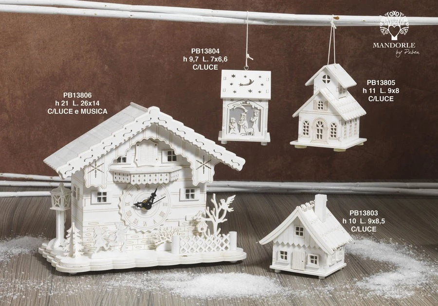PRESEPE CASETTA PRESEPE 9.7 CM. LEGNO CON LUCE