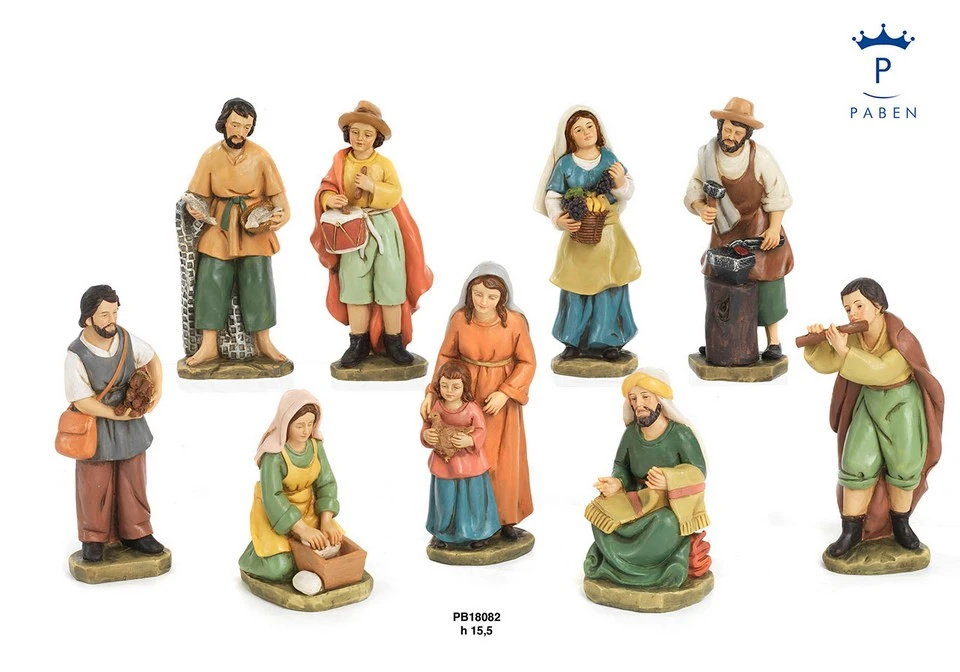 SET 9 FIGURINE PRESEPE 15.5 CM. RESINA