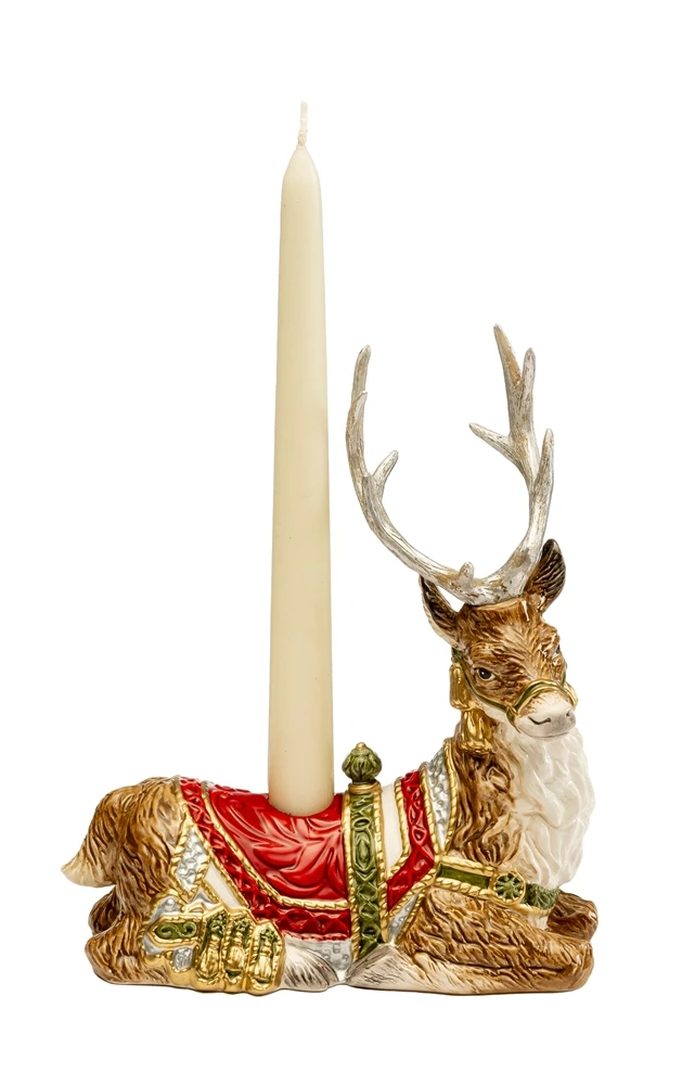RENNA SEDUTA NATALIZIA PORTA CANDELA IN CERAMICA