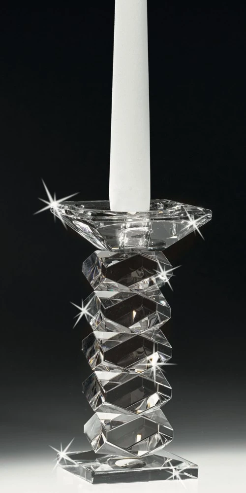 CANDELIERE IN CRISTALLO CON DECORAZIONE GEOMETRICA - RANOLDI
