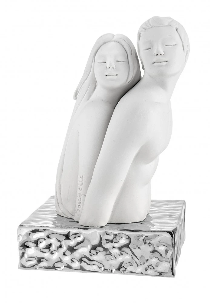 SCULTURA COPPIA MEZZO BUSTO H.11 BIANCO/ARGENTO