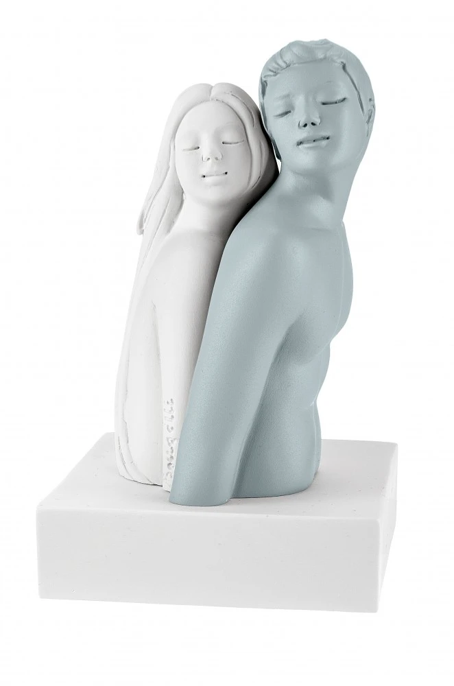 SCULTURA COPPIA MEZZO BUSTO H.11 BIANCO/AZZURRO
