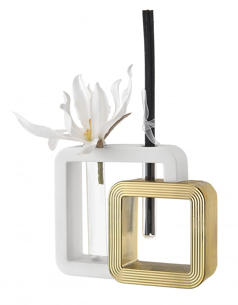 VASO PROFUMATORE QUADRO 27X23 BIANCO/ORO