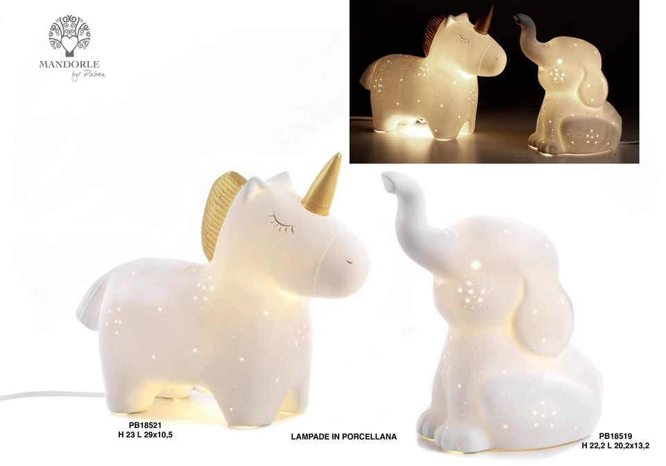 LAMPADA DA TAVOLO UNICORNO 23 CM. PORCELLANA