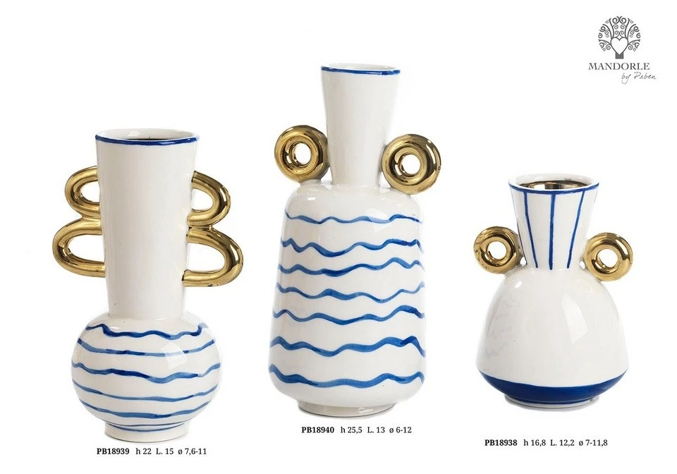 VASO LINEE BLU-ORO 25.5 CM. PORCELLANA
