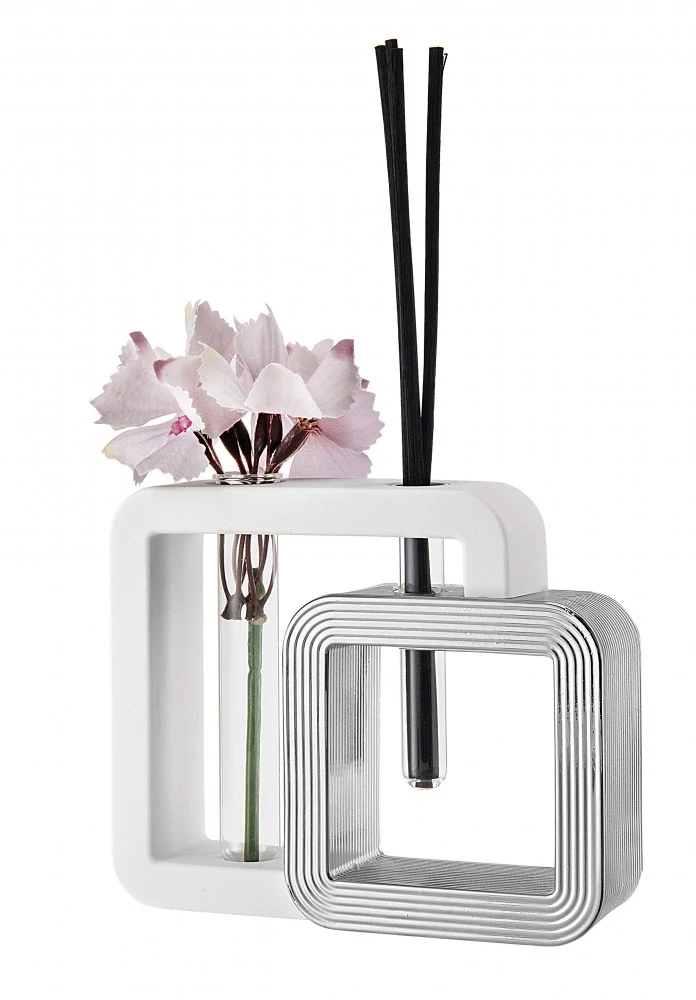 VASO PROFUMATORE QUADRO 27X23 BIANCO/ARGENTO