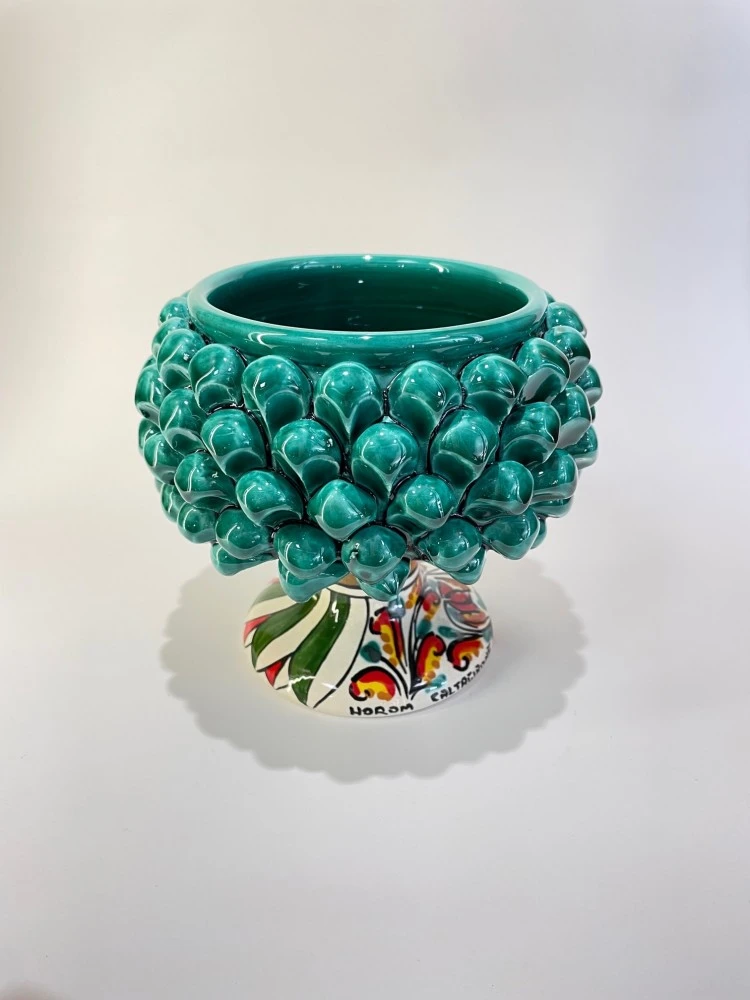 CACHEPOT DECORATO VERDE CM.15 CALTAGIRONE
