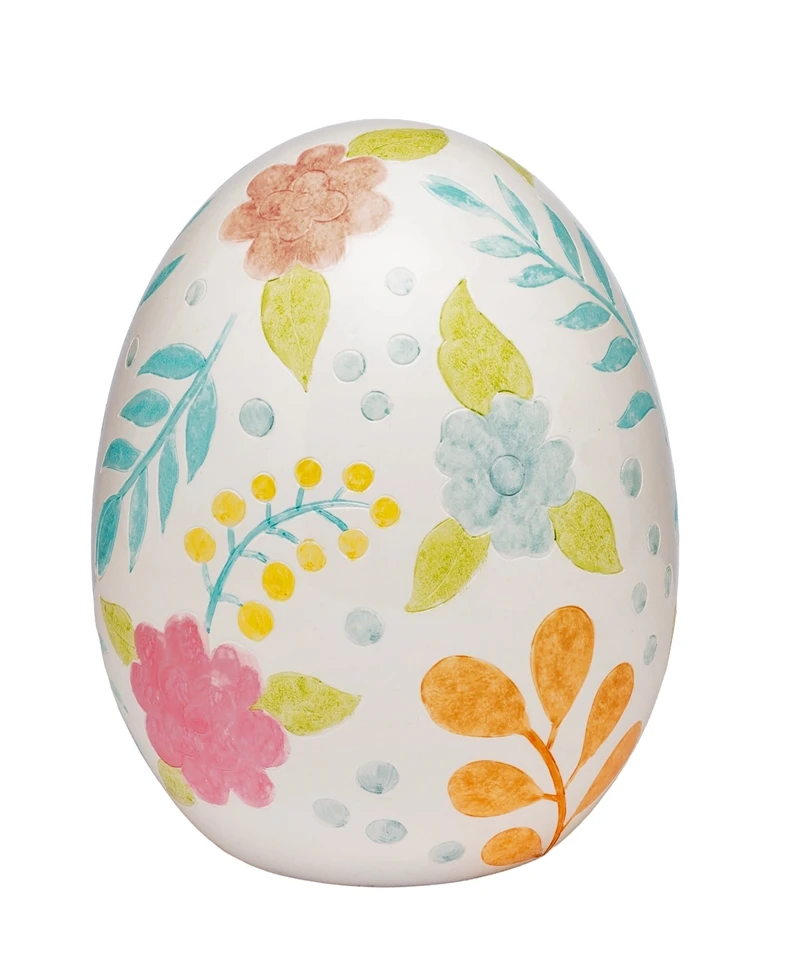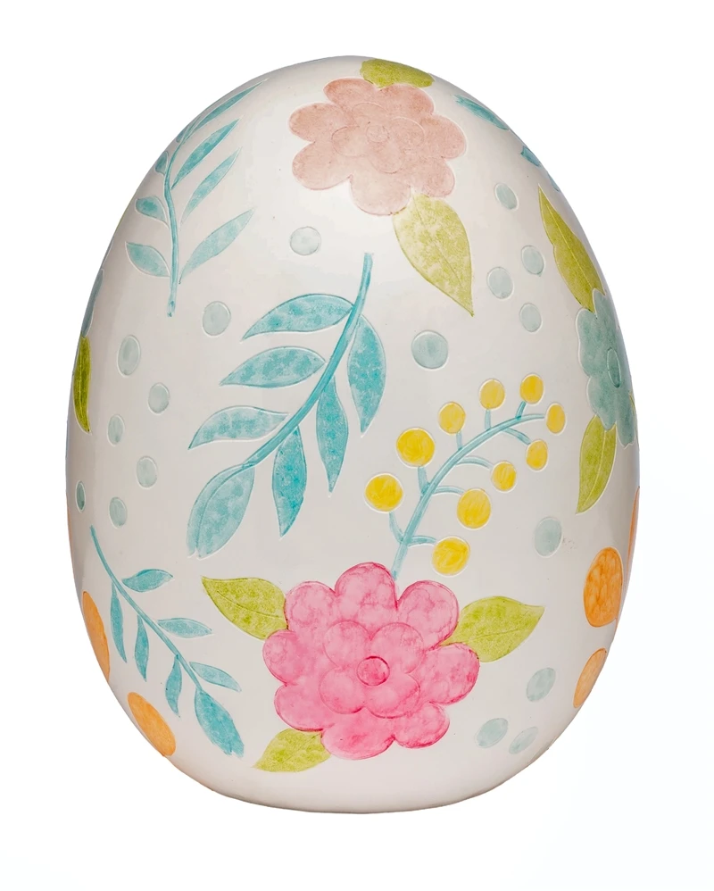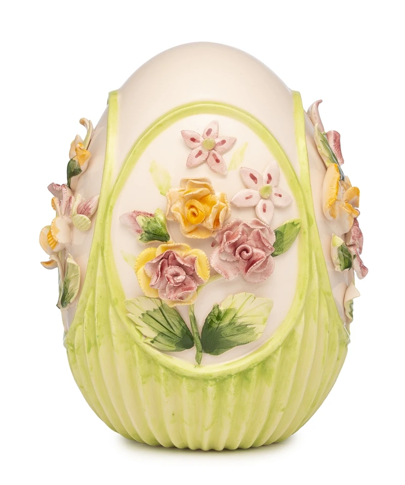 UOVO DI PASQUA IN PORCELLANA CON FIORI A RILIEVO