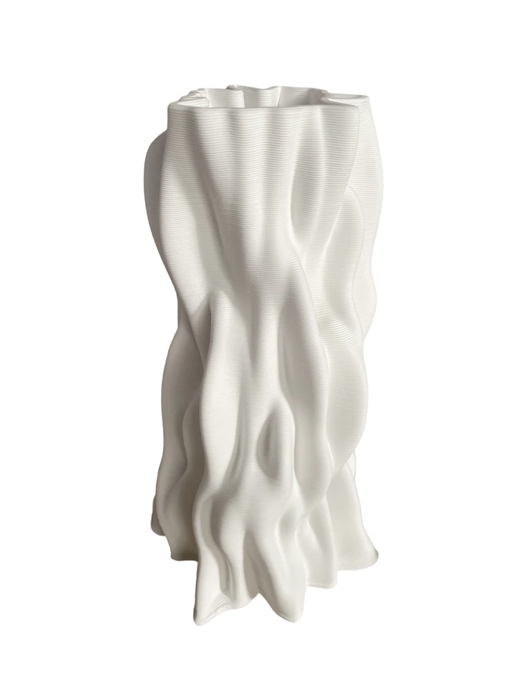 Vaso in Ceramica a Righe 3D: Design Contemporaneo e Texture Materica - Cm. 25 Bi.