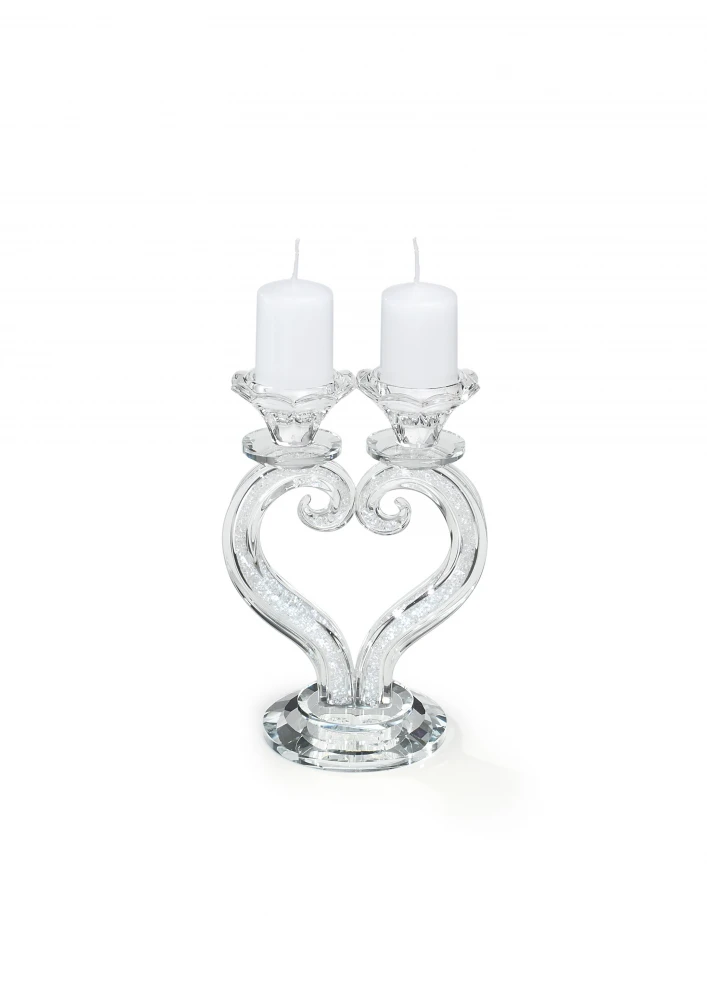 CANDELABRO CRISTALLO CUORE 2 FIAMME H19,5X13