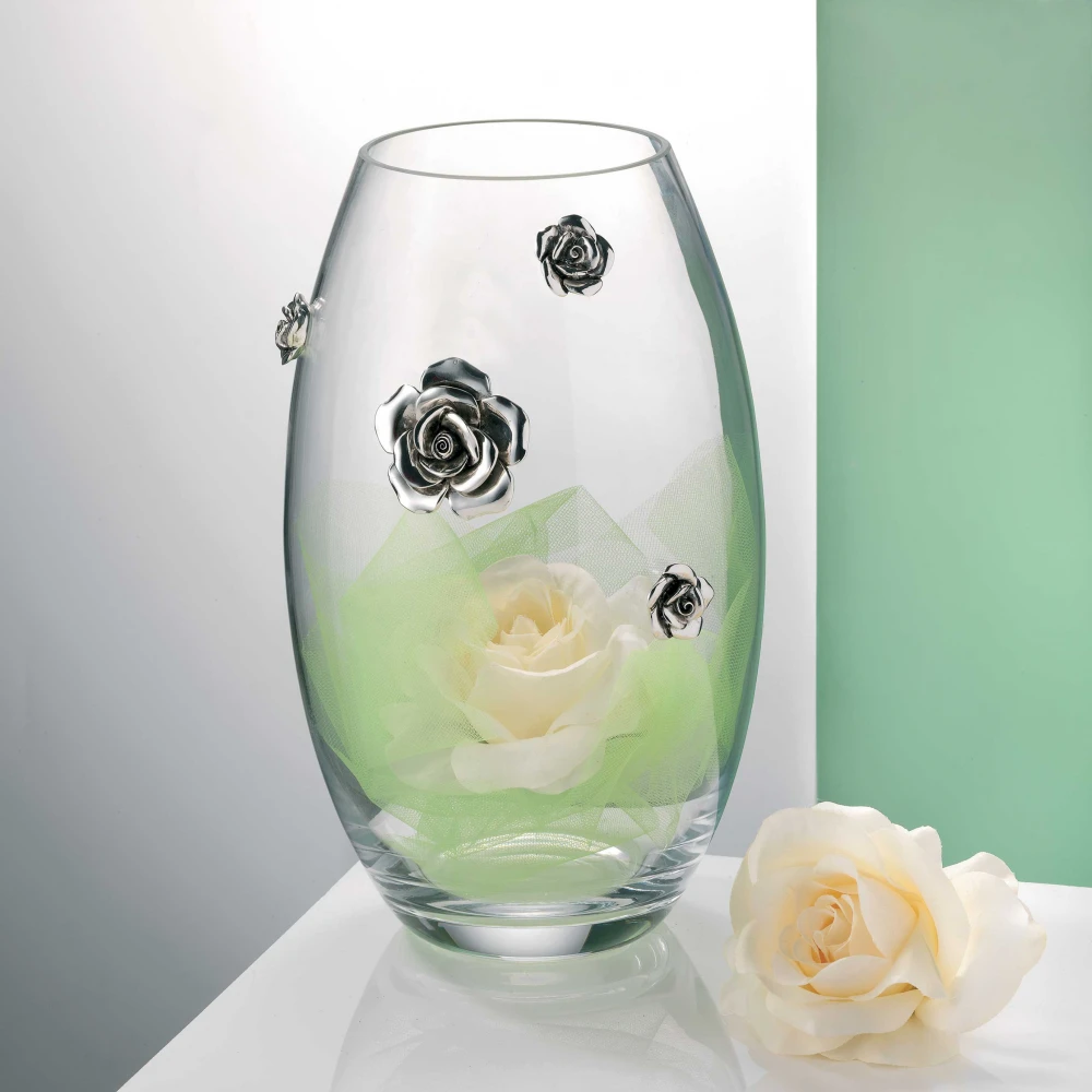VASO TONDO MARGHERITE H.30 ARGENTO