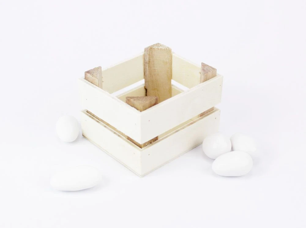 Set 25 pz. cassetta legno bianco sporco senza confetti