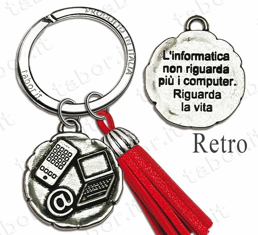Bomboniera portachiavi laurea in informatica con nappina rossa