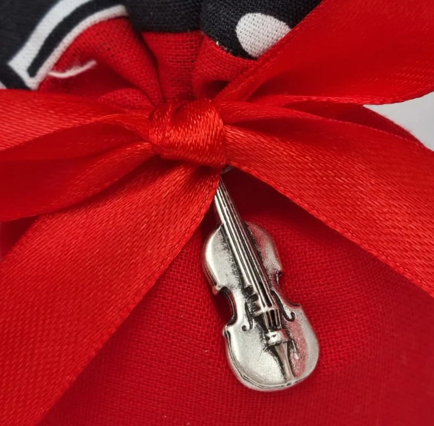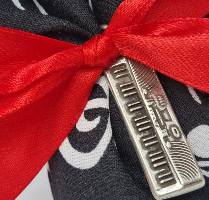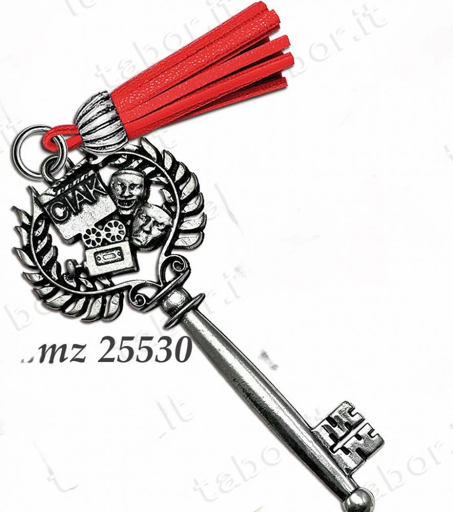 Bomboniera portachiavi laurea scenografia e spettacolo con nappina rossa