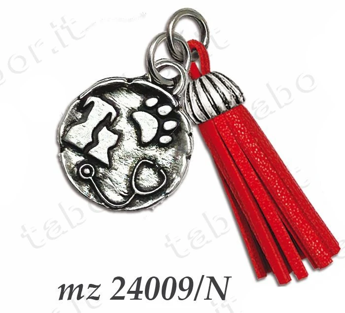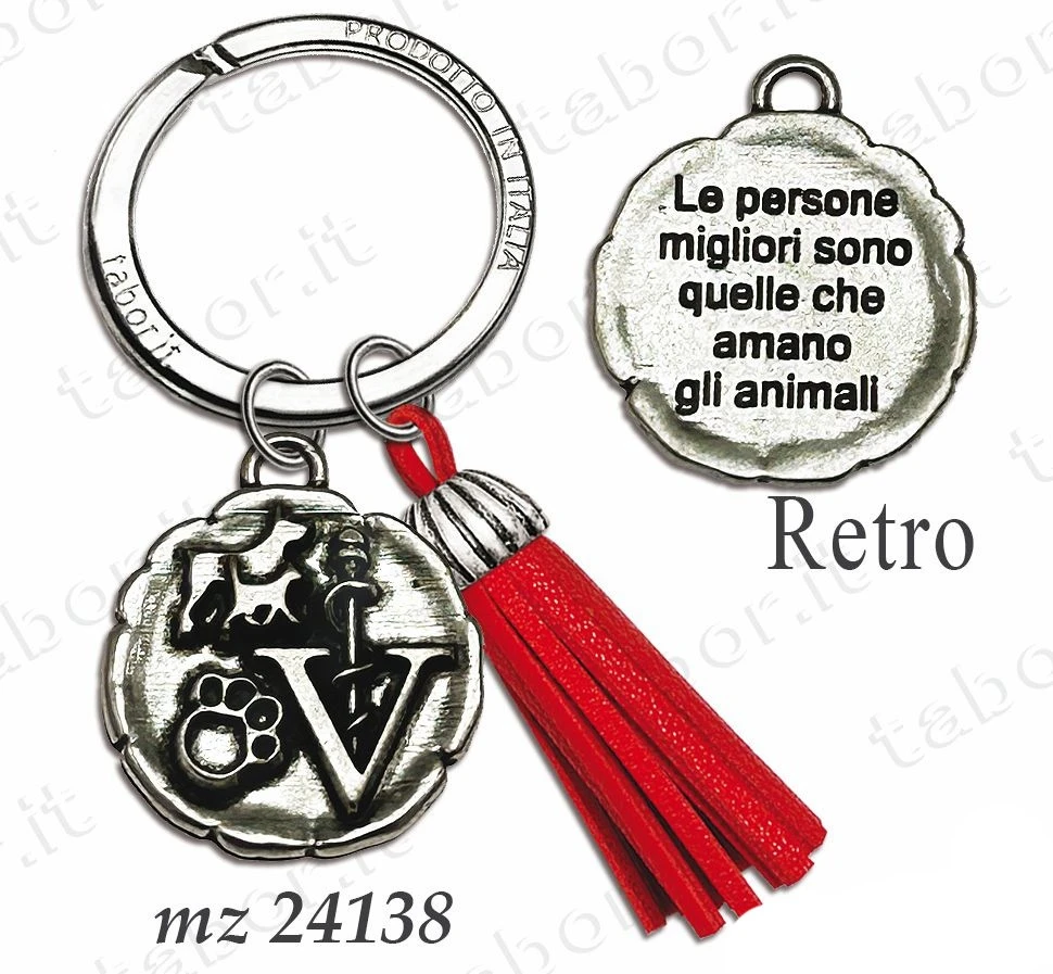 Bomboniera portachiavi laurea veterinaria con nappina rossa
